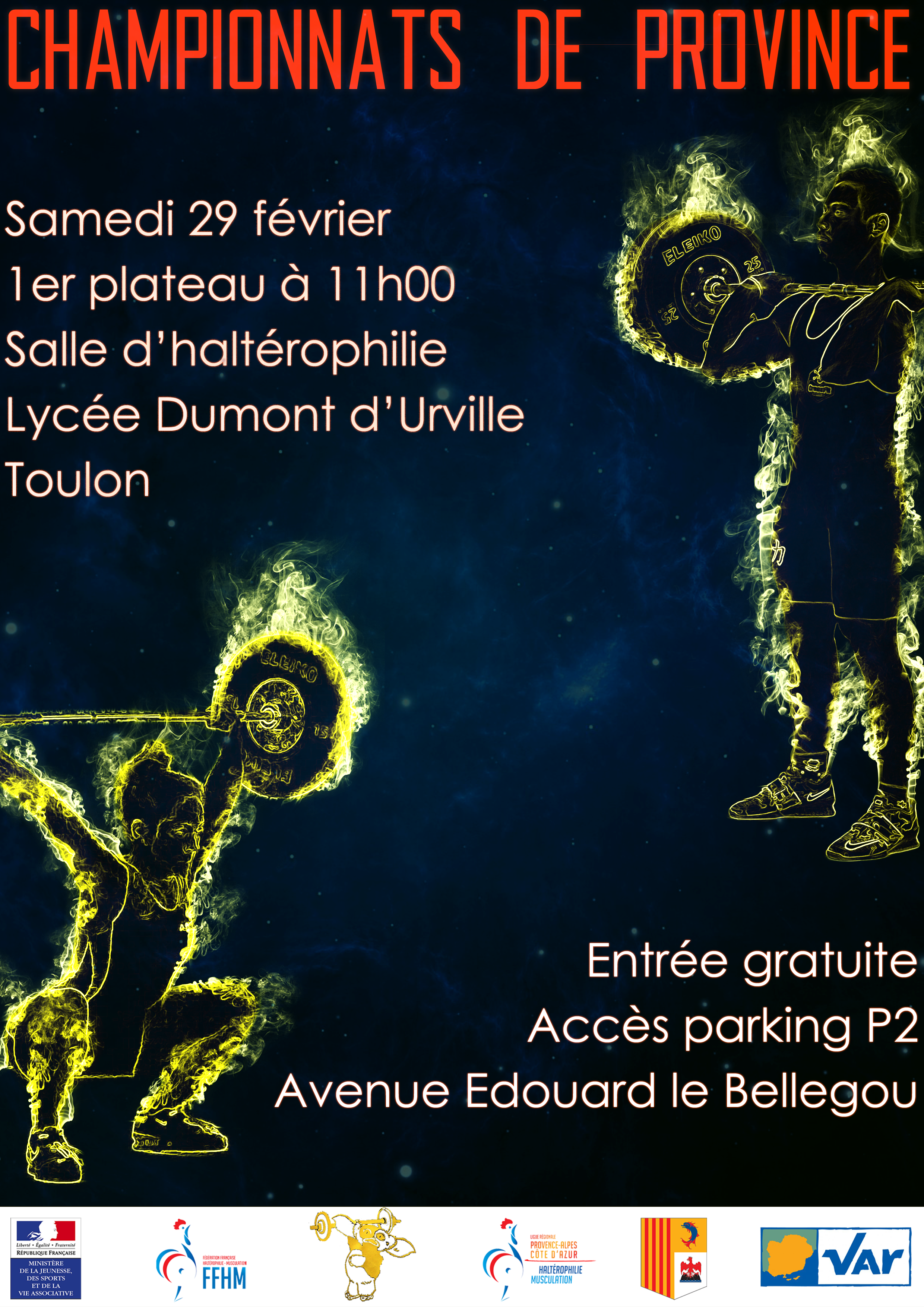Samedi 29 février, l’ASLDD Toulon organisera dans sa salle d’haltérophilie les Championnats de Province réservés aux athlètes ayant au minimum le classement Régional. Cette compétition sera qualificative pour les Eliminatoires de Ligue, le Grand Prix Fédéral ainsi que les Championnats de France. Quatre plateaux seront au programme de cette journée.